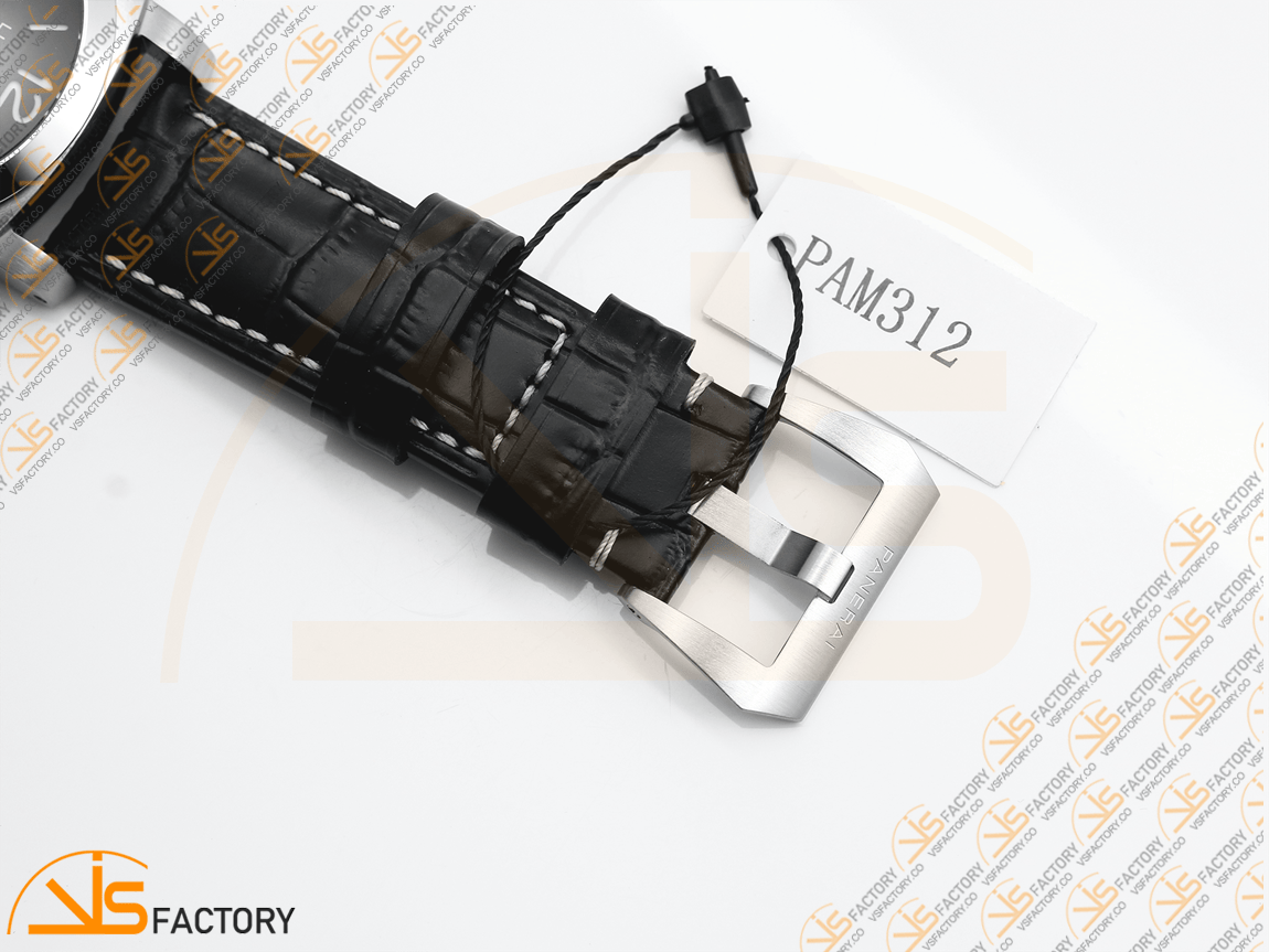 The VSFactory Panerai Luminor Marina PAM312 showcases a bold black dial within a durable 904L steel case, paired with a premium black leather strap. Powered by the super clone P.9000 automatic movement, it delivers superior accuracy and power reserve. A timeless design ideal for enthusiasts of refined Italian watchmaking.