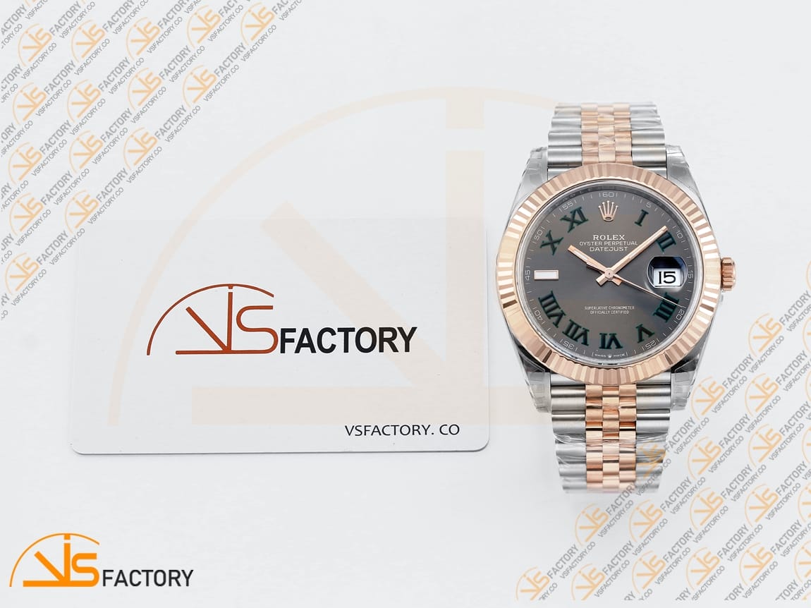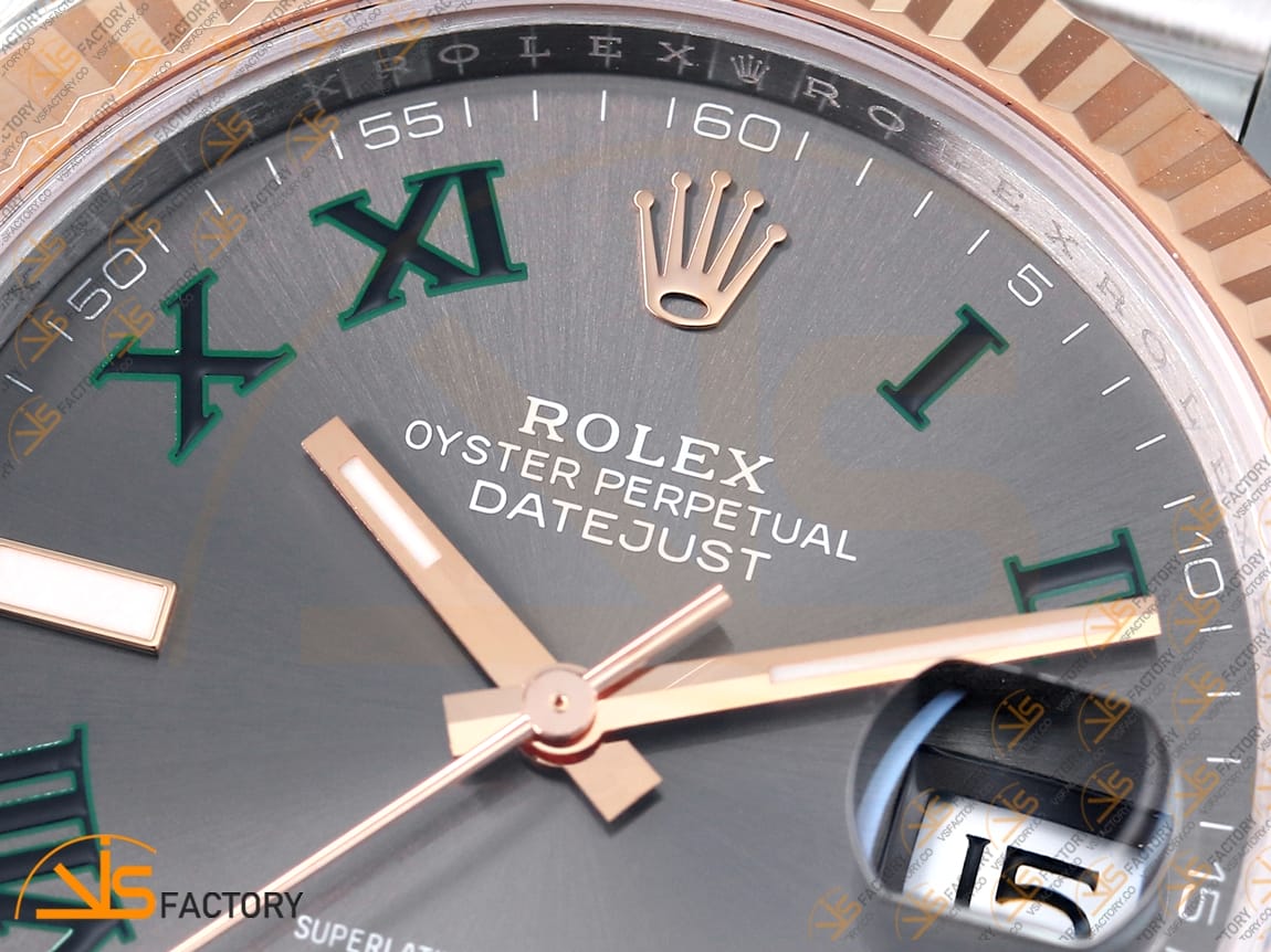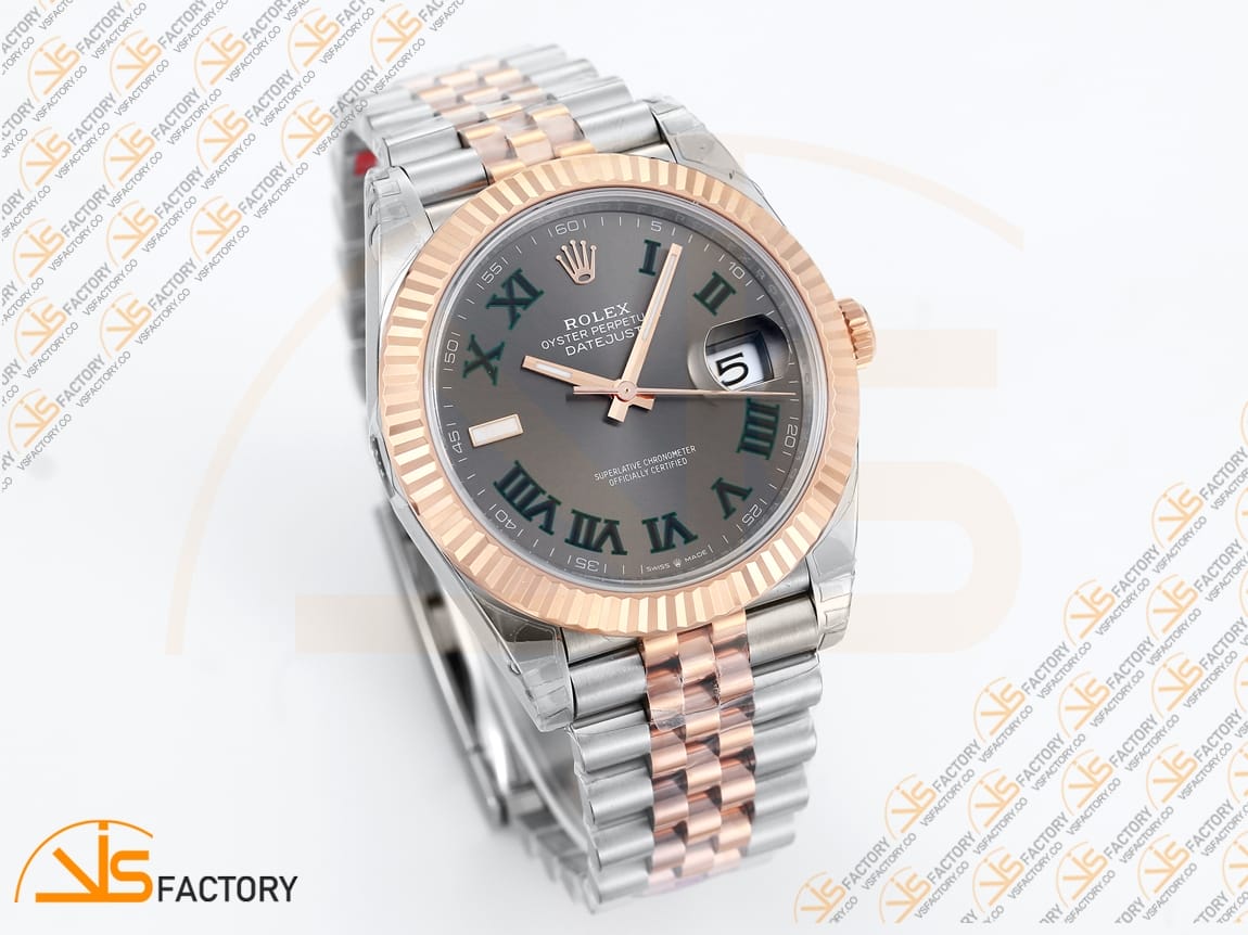 VS Factory (VSF) Rolex DateJust 41 126231 Gray Dial Green Roman Markers SS RG Jubilee VS3235 Movement